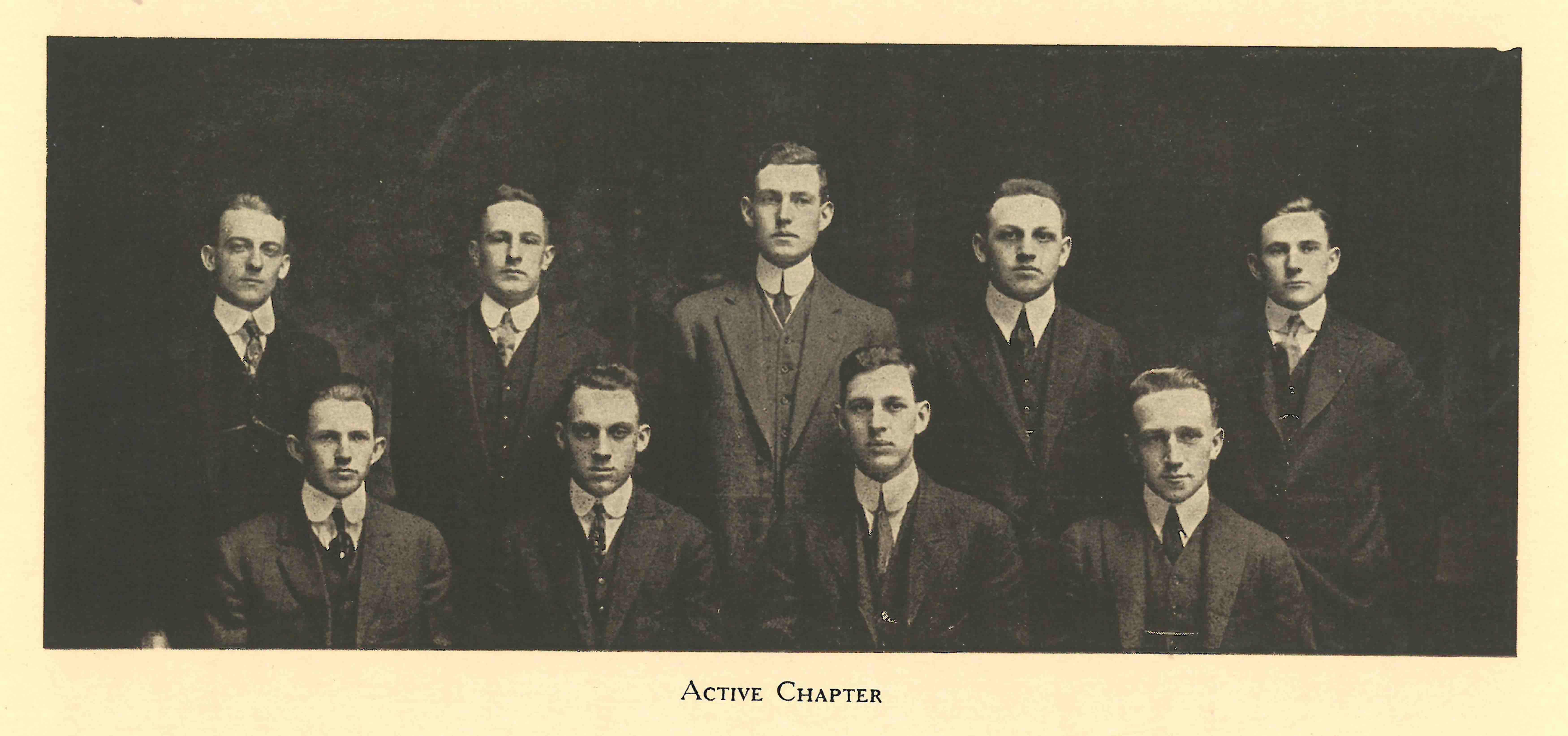 In honor of their Centennial Anniversary, we are re-printing Omicron Chapter's original installation article from the July 1915 issue of The Rattle. Reflections were provided by then-National Marshal Frederick W. Ladue, then-National President E. Wesson Clark, and Benjamin D. Morton, (1915), an undergraduate and Charter Member of Nu Chapter who traveled to Richmond with two additional Nu Brothers to assist with the installation. (Click Here to view a PDF version of the original Omicron Installation Article as it appeared in the July 1915 issue of The Rattle; a text version of the Omicron article is below.)
