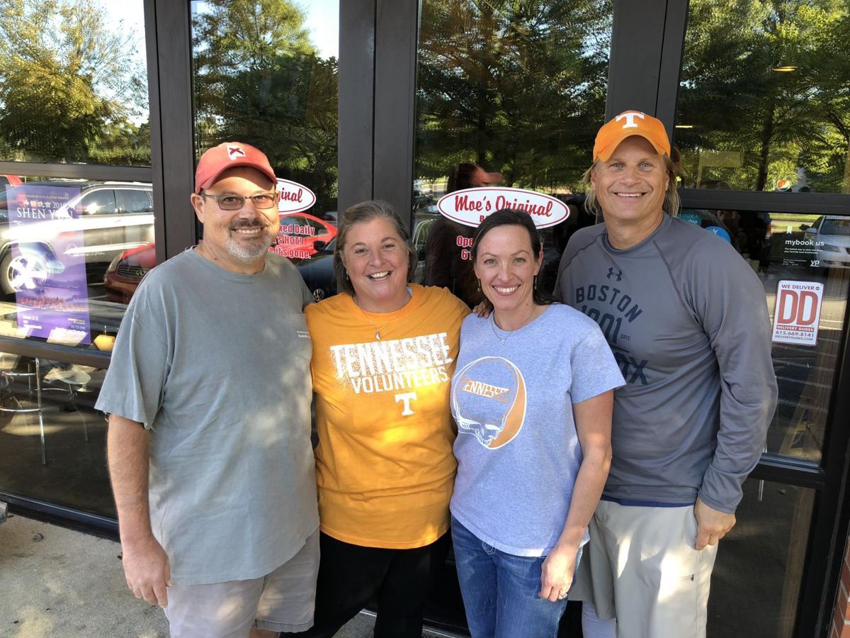 The two couples regularly watch football and eat at Moe’s Original Bar B Que on Carothers.