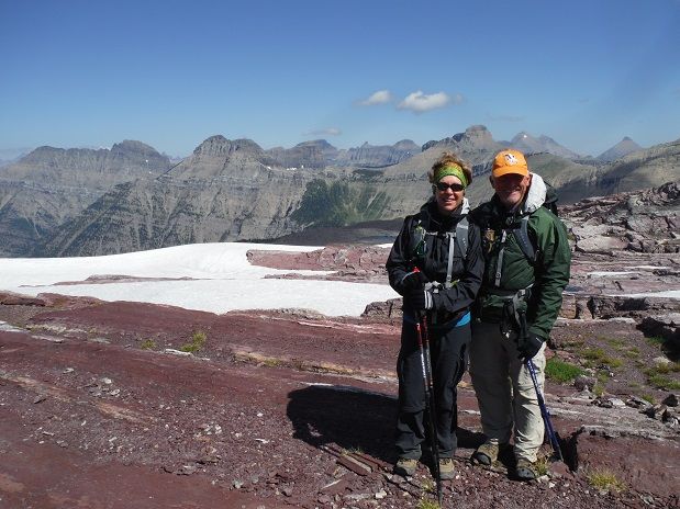 Barb and Bill Samsoe hiking near Sperry Glacier in Glacier National Park