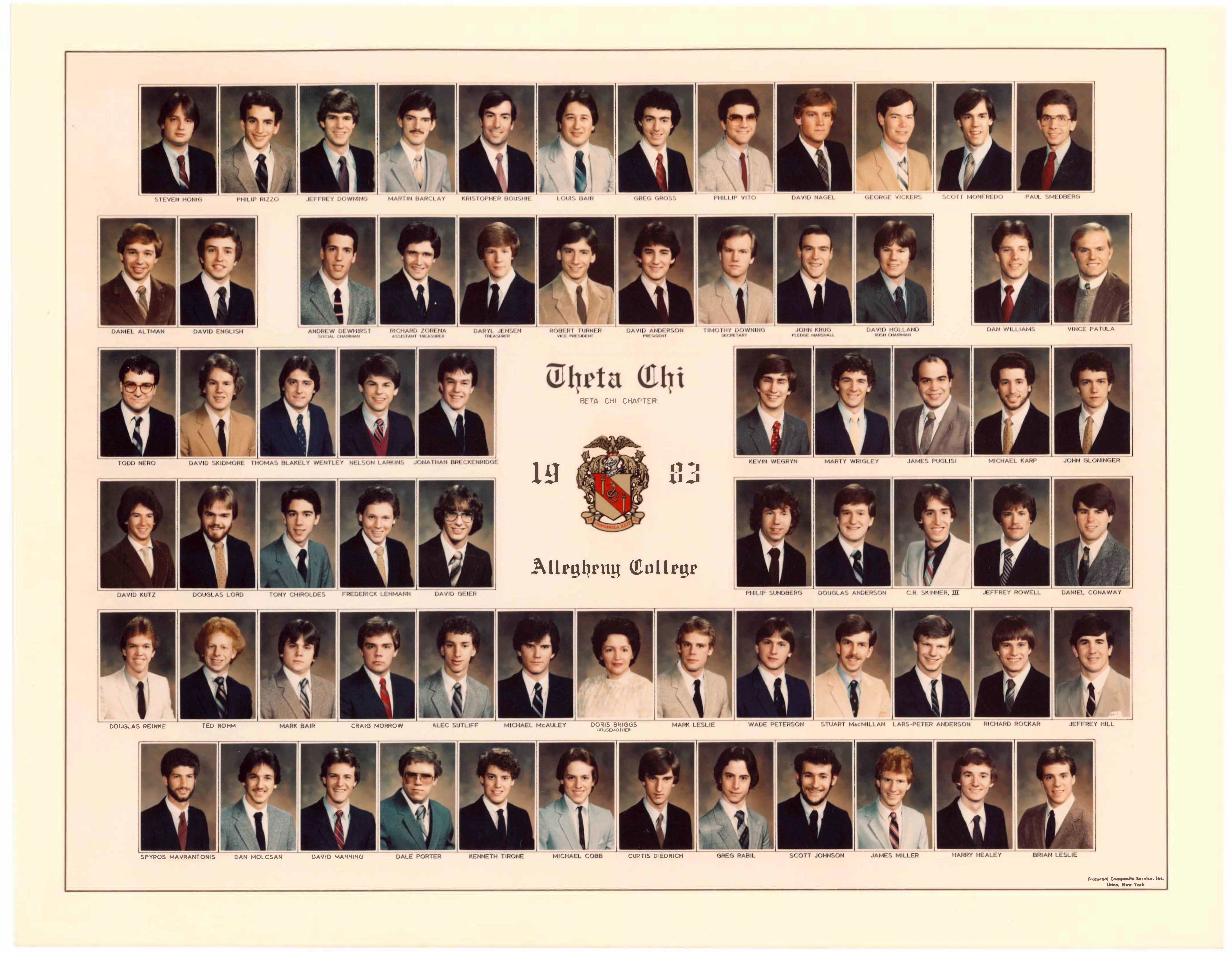 Jim Steele (1981) said: "Doris was a wonderful part of my Allegheny Theta Chi experience. She truly made the house a home. Always cheerful, willing to listen and offer encouragement. And yes, she put the home in home cooking."