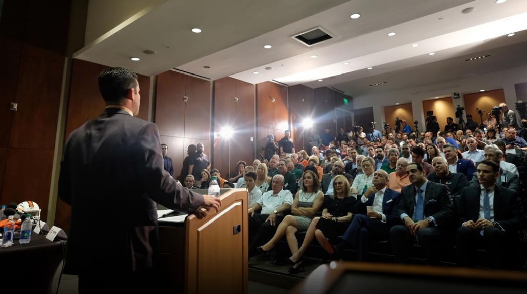 "It's actually January 2nd, 2019 – 35 years to the day since Miami won its first national championship vs. Nebraska," Diaz said. "For the 9 year old kid who was up way past his bedtime and watched Kenny Calhoun bat that ball down and watched the Canes storm the field, the fact that I'm here standing in front of you right now, if you need more evidence that this is a 'God' story, that's it. And when you combine the unusual events of this past weekend, certainly I believe that God's hand was in this, and I want to thank him for the opportunity to stand before you today."