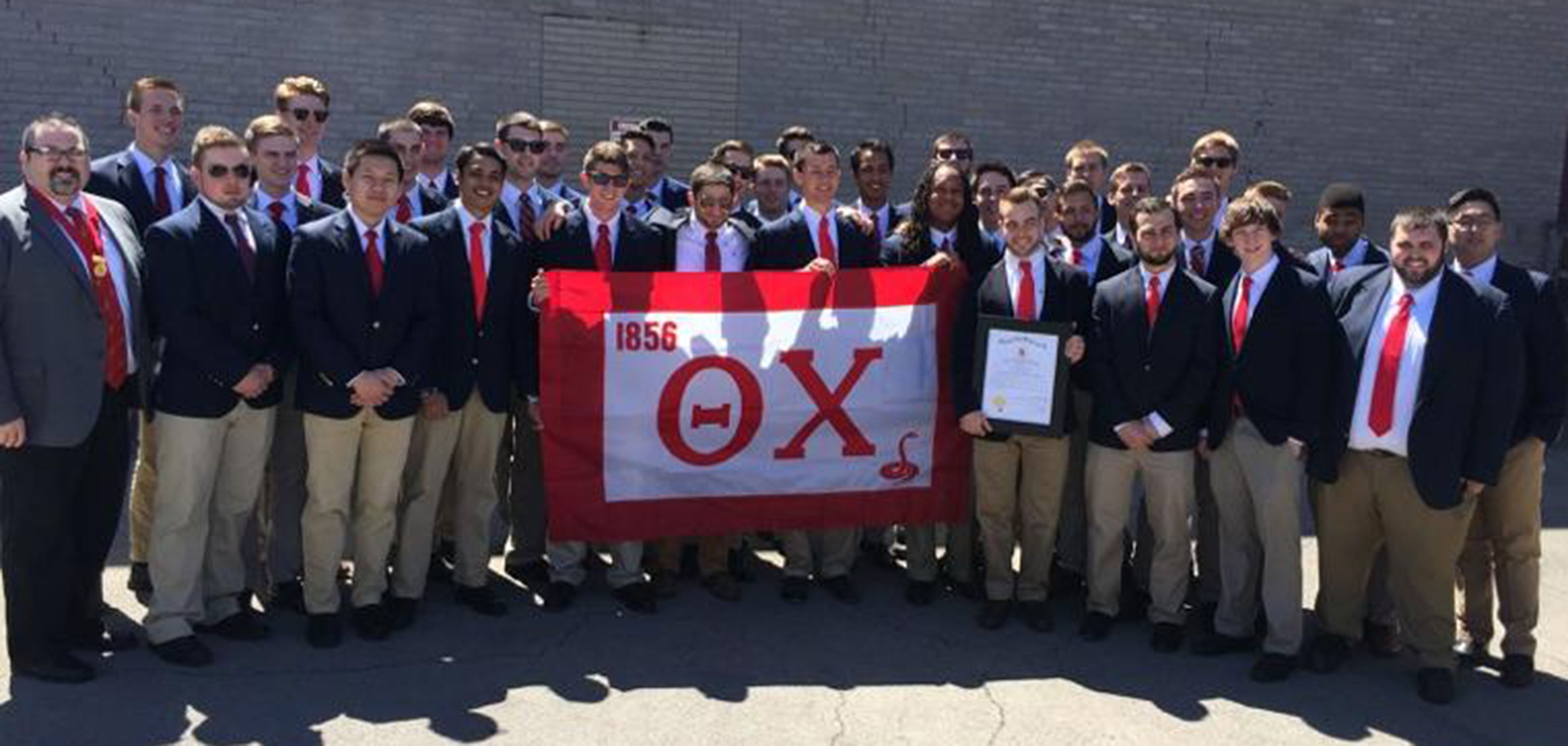 On the morning of April 25, 2015, 35 members of RIT colony were initiated as brothers of Theta Chi Fraternity and united together as the Iota Psi Chapter at the Rochester Institute of Technology, at the Fairport Masonic Lodge in Fairport, New York. National Marshal Tait Martin presided. Representing International Headquarters were Senior Director for External Relations JD Ford and Field Executive Darien Key.