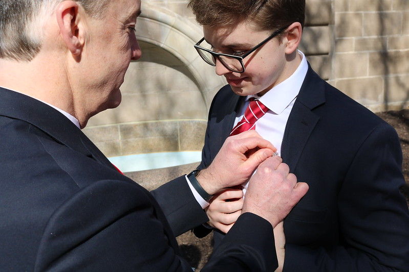 A fraternal highlight of the day was the establishment of a new three-generation legacy for the Fraternity. Three generations of Theta Chis from three different chapters joined each other in brotherhood with grandfather Ted Payne (Delta Theta/Toledo 1960) and father Doug Payne (Alpha Chi/Syracuse 1992) attending the ceremony to initiate Ben Payne (Alpha Beta/Pittsburgh 2026). Doug took Ted’s Badge and presented and pinned the family Badge on Ben.