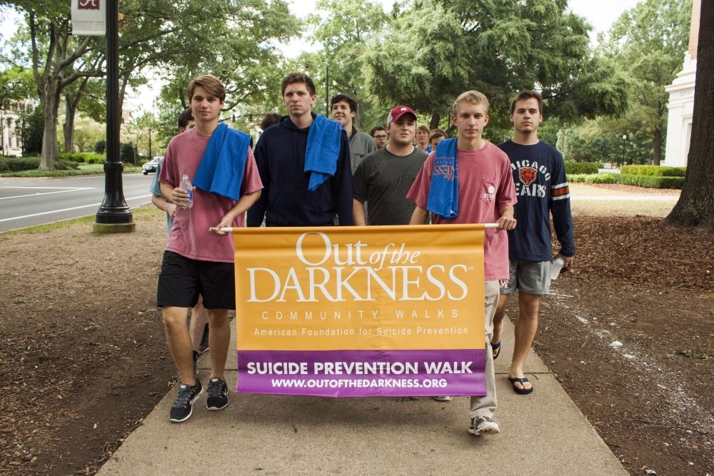This is is the second year that the men of Alpha Phi/Alabama have participated in the Out of the Darkness walk. Click here to read about Alpha Phi's leadership in the wake of tragedy last fall.
