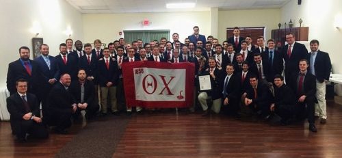 In March of 2013, the group of four met with the Greek Advisor to discuss their plans. Soon after, then-Sr. Director for Recruitment and Expansion, JD Ford met with the interest group to discuss the process of becoming a chapter of Theta Chi Fraternity. Shortly after Ford’s visit, the work of becoming a chapter truly began. Chris Gulino did what he could to help speed up the process.