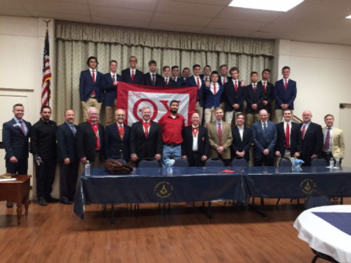 The colonization ceremony was held at the Consuelo Masonic Lodge in Escondido, CA and was presided over by International Marshal Herb Morgan. Attendees included past International President Dave DeVol, past International Treasurer Ron Ramos, Chief Operating Officer Ray Vanlanot, Counselor Jim McMahon, and alumni from Gamma Theta/San Diego State, Zeta Rho/Kentucky, Theta Iota/UC-Santa Cruz, and Kappa Alpha/Spokane.