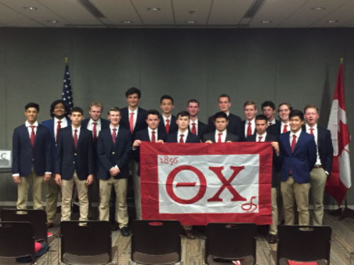 He proposed this idea to friends and fellow colony members Joseph Rubino, Robert Arnold, and Osa Adler, who were immediately on board with Richmond’s proposition. The next step was to decide on what fraternity they would want to join. The first fraternity to interest Matthew was Theta Chi since his dad, Ed Richmond (1988), joined the fraternity when the Theta Delta Chapter originally chartered in 1986. After researching Theta Chi’s ideals and traditions, the men officially decided to pursue the recolonization of the Theta Delta Chapter.