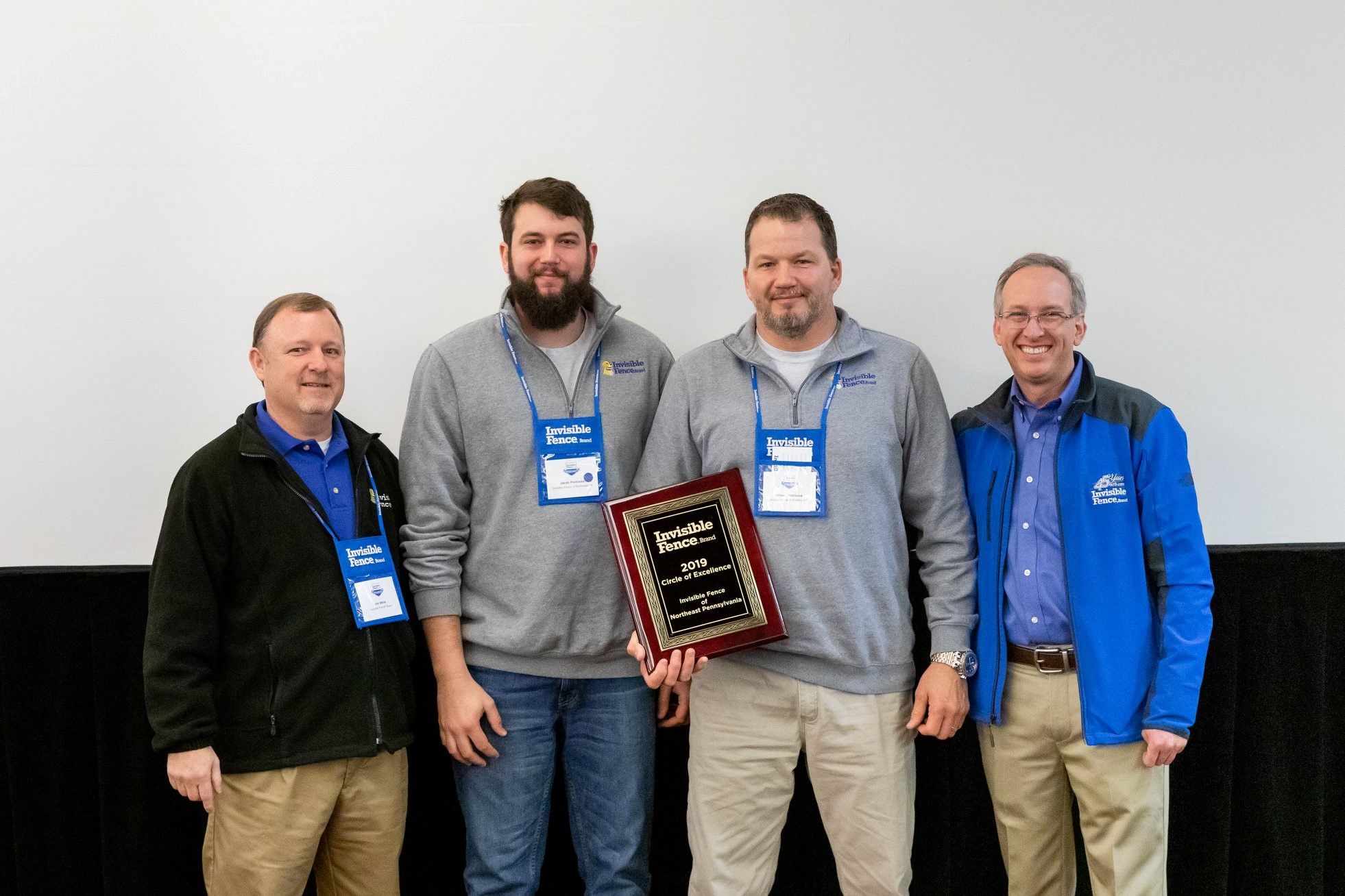 Seen From L to R: Jim White, Director of Dealer Support Invisible Fence® Brand; Jacob Prohaska, Vice President Invisible Fence of Northeast PA; Shawn Prohaska, President Invisible Fence of Northeast PA; Ed Hoyt, Director of Invisible Fence® Brand