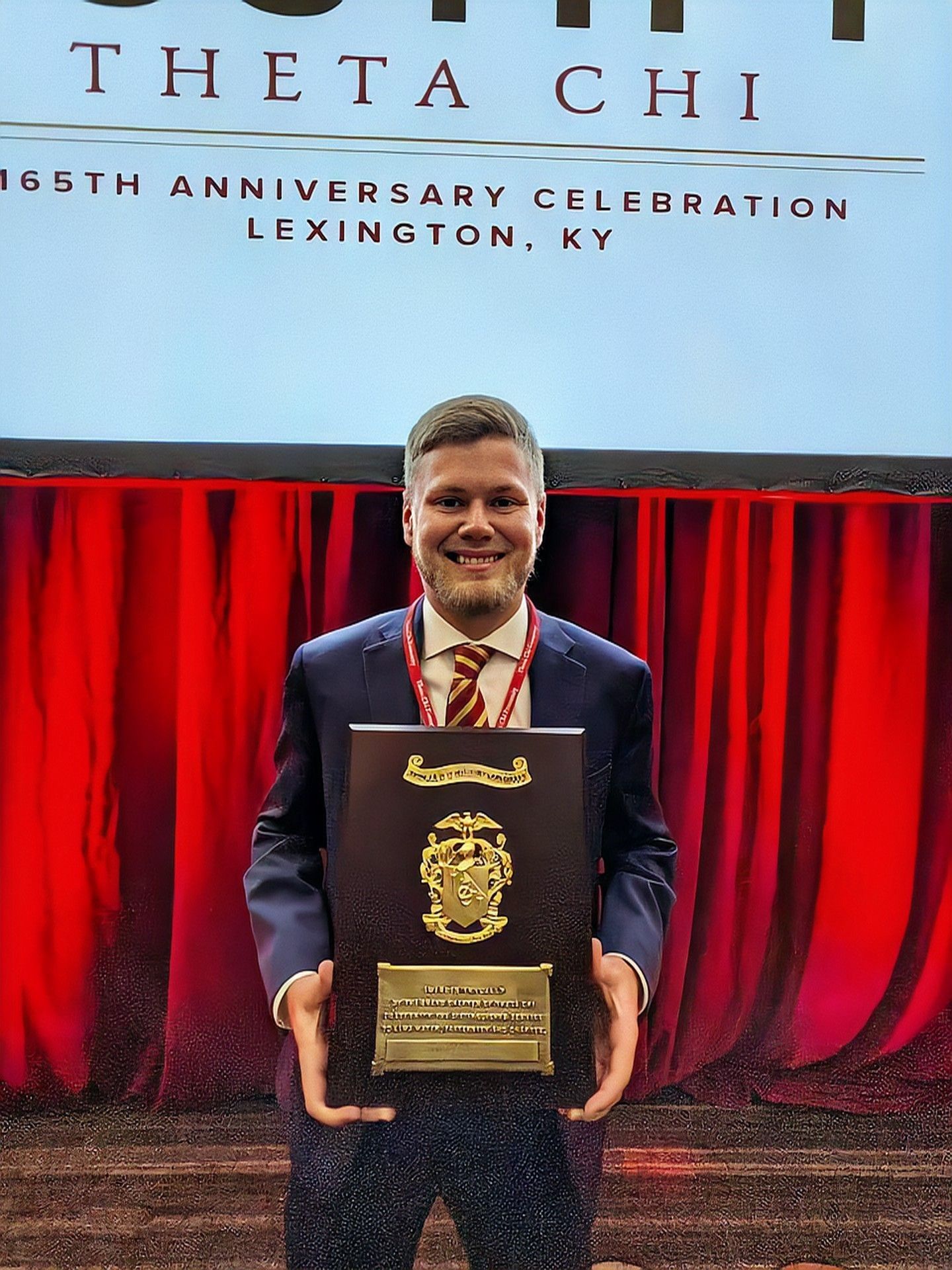 He also added, “During my four years as a collegiate member of the Fraternity, I fully credit Theta Chi for my growth as a man and as a brother. Theta Chi presented me with numerous opportunities to grow my leadership skills while maintaining the responsibility of offering an Assisting Hand to others. Theta Chi allowed me to become more confident in my leadership skills, but more importantly, the diverse perspectives and viewpoints within Theta Chi taught me how to become an empathic leader.” Hunter concluded, “Being a 'Resolute Man' is not just a slogan, but rather, being a 'Resolute Man' is a moral guide that can shape a young man's life into one of purpose. I am so thankful for the opportunities Theta Chi provides all brothers, including myself.”