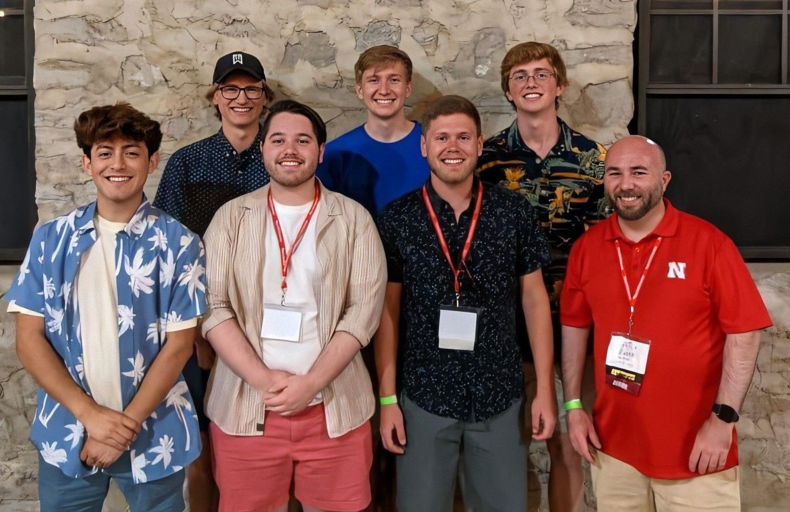 Hunter (bottom row, second from the right) with fellow Gamma Phi/Nebraska Wesleyan brothers during the 165th Anniversary Celebration