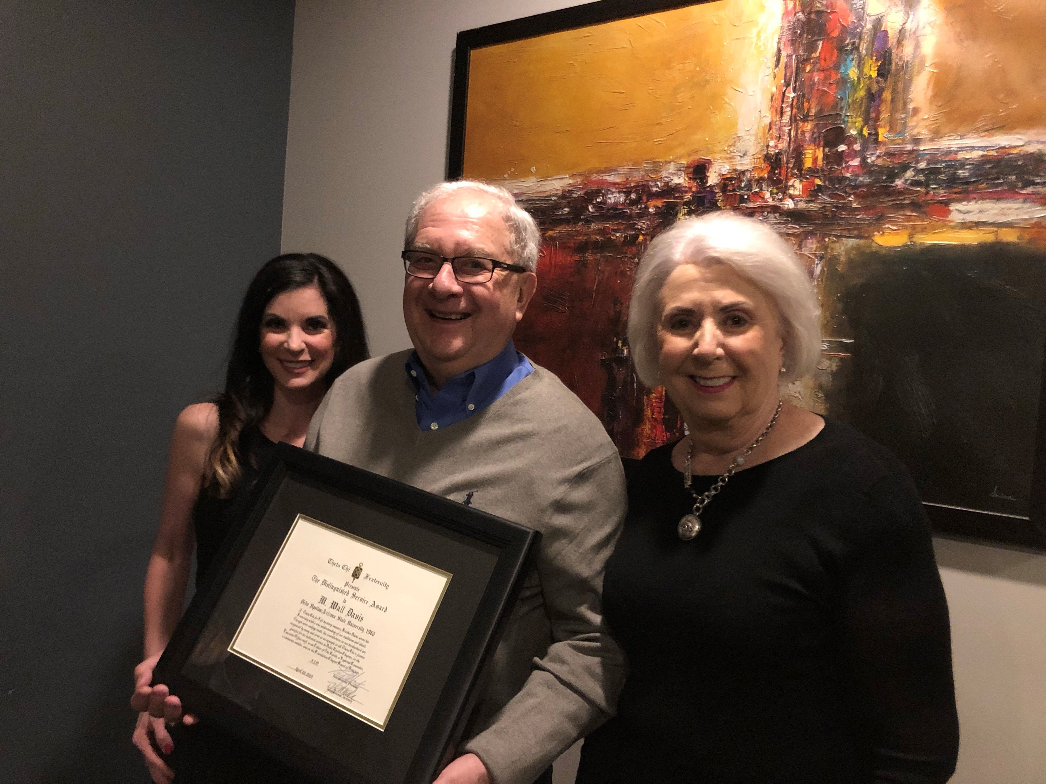 Walt Davis (C) receiving his Distinguished Service Award from Past Foundation Chapter President Lindsay Olsen (L) and Past International President Tait Martin (R)